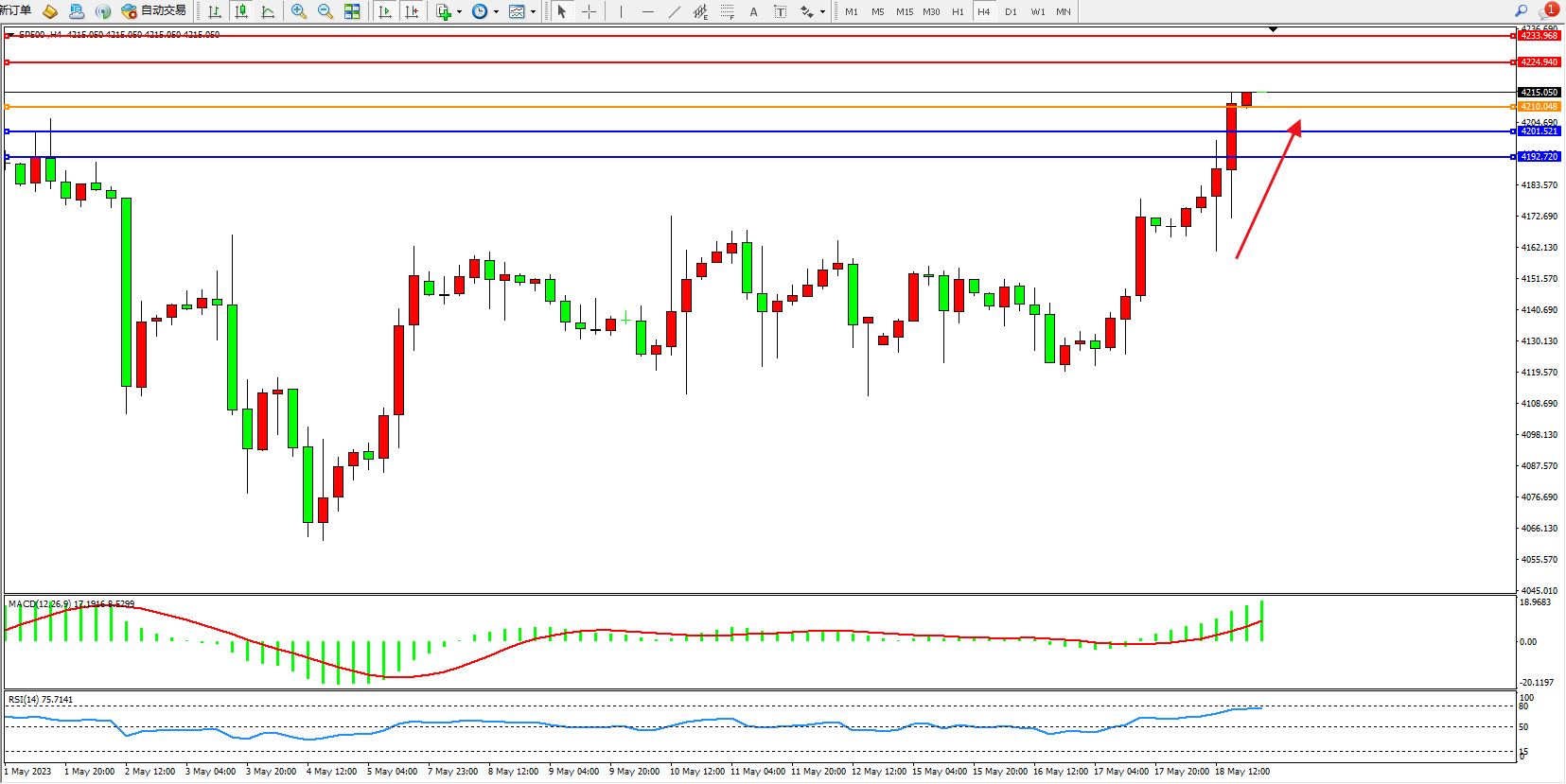 标普500指数5月18日(周四)收盘上涨39.23点,涨幅0.94%,报4198.00点;调查显示,美国通胀年率至少要到2025年才会降至美联储2%的目标。预计失业率将从目前的3.4%水平上升到2023年底的4.2%,到2024年平均为4.5%,与过往经济衰退相比仍处于历史低位。