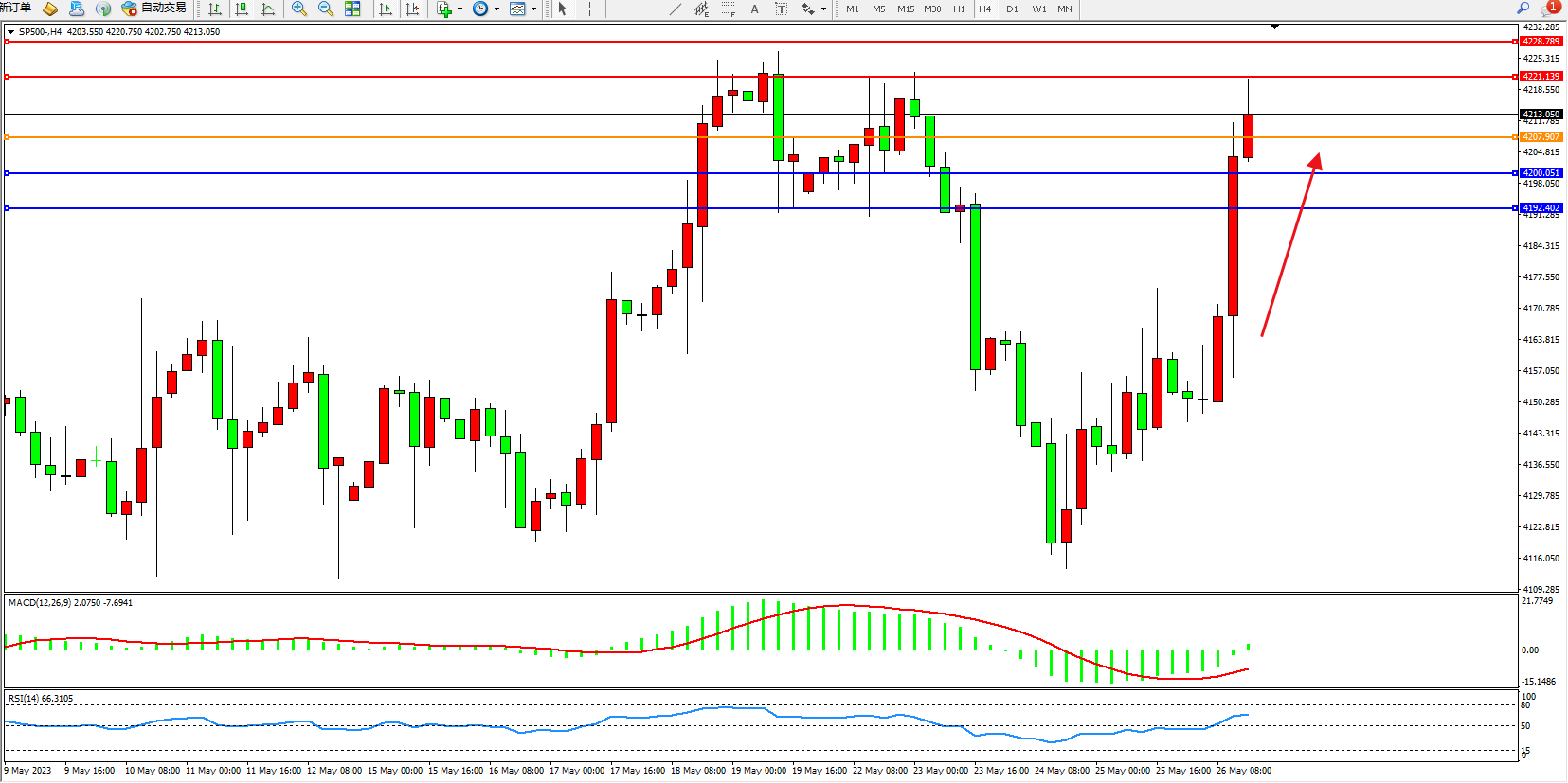标普500指数5月26日(周五)收盘上涨53.20点,涨幅1.28%,报4204.48点;美联储密切关注的通胀指标核心PCE在4月份环比和同比均有所上升。未来几个月,美股似乎仍停留在限定区间内,仍然看到下行风险占优,股市下月可能面临更大压力,因有迹象显示可能出现衰退,投资者更倾向于现金作为安全资产。