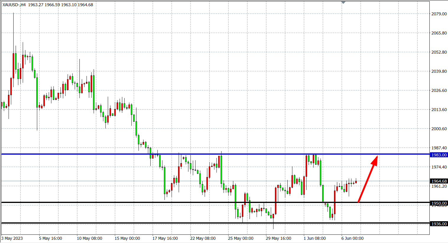 周二(6月6日)市场较为平静,但是调查显示,仅51%的受访人认为美国即将陷入经济衰退,低于5月份的55%,这也是2022年5月以来最低水平,高盛也下调美国经济衰退概率至25%,预计美联储将于7月份加息25个基点,现货黄金因美元和美债收益率走高而承压,但最终仍小幅收涨0.08%。