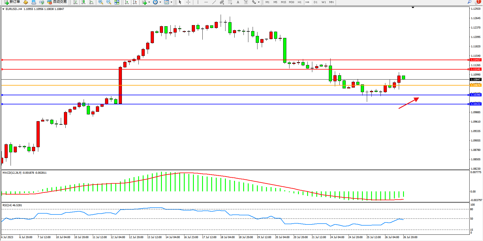 交易策略:1.10674上方看涨,目标1.11141 1.11417