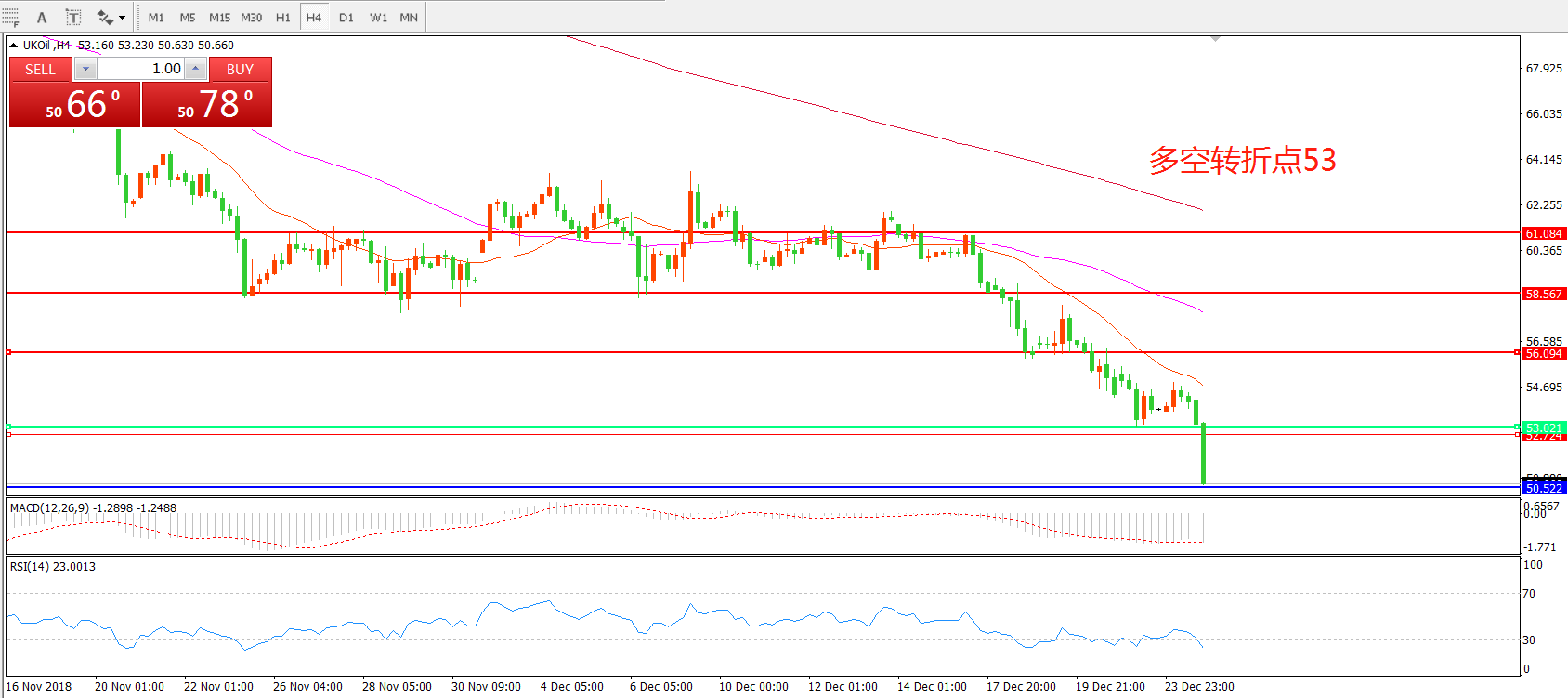 交易策略:在53.00之下看跌,目标50.00   46.00