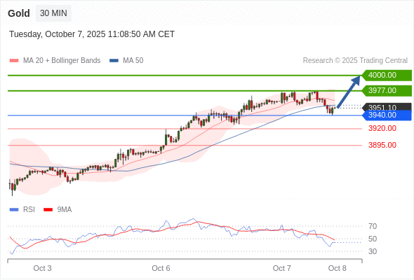 在 3940.00 之上,看涨,目标价位为 3977.00 ,然后为 4000.00 。